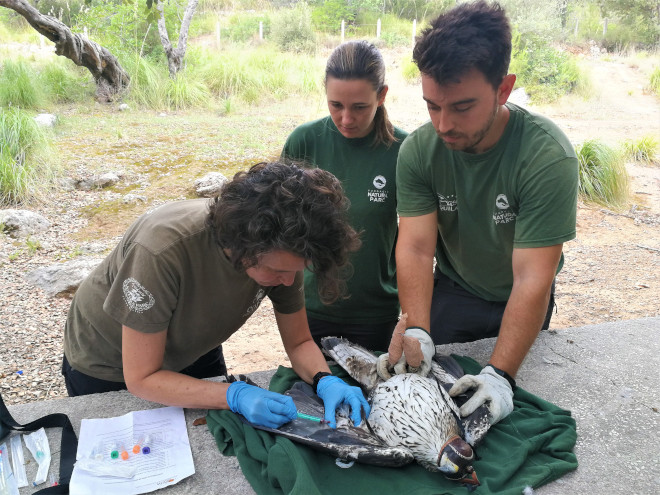 Durante la intensa jornada de trabajo para capturar y marcar con el emisor a "Dalía", que tuvo lugar el pasado 16 de septiembre, el equipo de AQUILA a-LIFE ha contado también con la ayuda de ornitólogos expertos del GOB Mallorca y veterinarias del COFIB, quienes han tomado muestras del ejemplar y han confirmado su buen estado físico antes de liberarlo de nuevo al medio. Este operativo se ha realizado con el apoyo de la Fundación Biodiversidad, del Ministerio para la Transición Ecológica, y gracias a la colaboración de Red Eléctrica España.