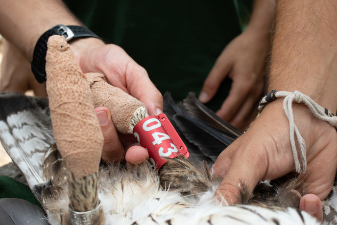 Tras haber sacado adelante uno de los dos pollos que nacieron este año, miembros de la Fundació Natura Parc e Ibanat han invertido varios meses de trabajo en recapturar a "Dalía" con el fin de poder colocarle un emisor satelital. Esta hembra de águila de Bonelli, que había perdido su primer emisor en 2017, pocos meses después de que dejase de emitir, estaba siendo controlada únicamente mediante la observación visual, lo que ha sido posible hasta ahora puesto que se mantiene territorializada desde entonces.